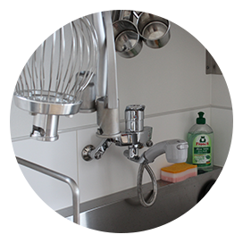 そのほか、必要に応じて手袋も着用します。器具の洗浄にも入念に配慮しています。